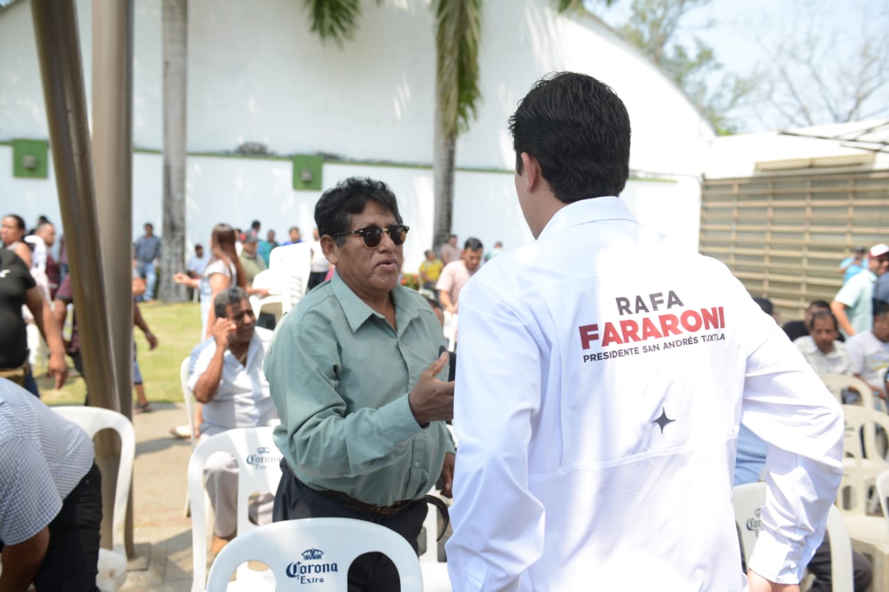 San Andrés Tuxtla, Ver., 9 de mayo de 2025.- Trabajaré de manera coordinada con el sector del transporte público en mi Gobierno, se comprometió el candidato de la alianza Morena- PVEM a la presidencia municipal de San Andrés Tuxtla, Rafa Fararoni.