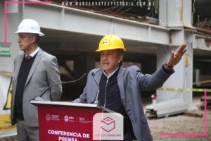 A su vez, el director general del Instituto de Espacios Educativos, Ricardo García Jiménez, reiteró la conclusión de la primera etapa por 232 mdp, consistente en limpieza, excavaciones, cimentación, columnas y vigas, y el inicio de una segunda que requirió 496 millones adicionales para los niveles superiores, instalación eléctrica, sonido ambiente, cámaras, gradas y cancha, a concluir en agosto.
