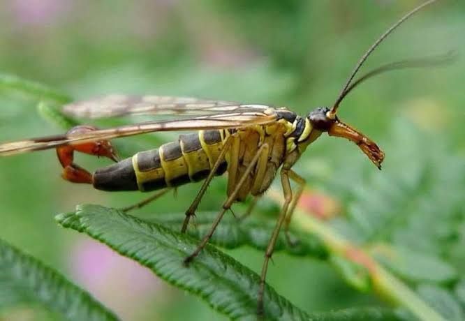 Su nombre científico es Panorpa nuptialis, pertenece al grupo de los mecópteros y, a pesar de su apodo, no es un alacrán ni un escorpión. Se le llama así por su apariencia: alas largas y un “aguijón” prominente que recuerda al de los escorpiones. Sin embargo, este aguijón no contiene veneno; en realidad, se trata del aparato reproductor del macho.