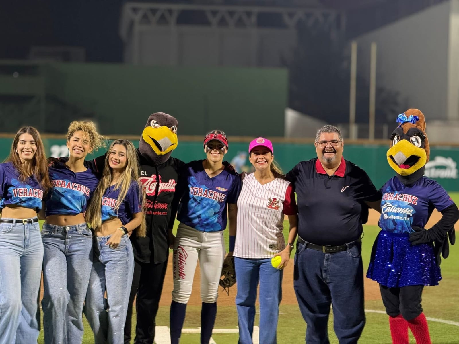 Anilú Ingram lanza primera bola en partido del Águila de Veracruz Softbol