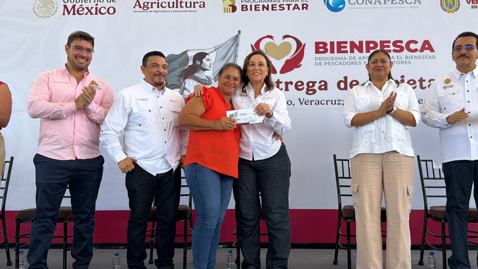 En este evento, la gobernadora Rocío Nahle anunció que su gobierno, por primera vez, otorgará un apoyo directo a los pescadores, cercano al 50 por ciento de lo que otorga la presidenta Claudia Sheinbaum a través del BIENPESCA, por lo que a partir de mayo próximo se estarán liberando los recursos de acuerdo al padrón de beneficiarios de Bienestar.