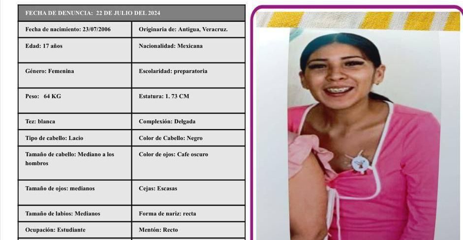 De la joven estudiante que este 23 de julio cumple 18 años de edad, no se conoce su paradero desde hace 3 días, su última ubicación fue en la localidad de Chichicaxtle perteneciente al municipio de Puente Nacional.
