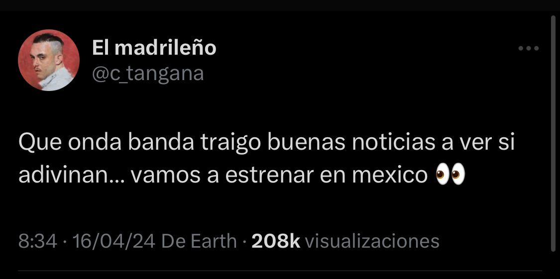 El mensaje de C. Tangana en Twitter, en el que anunció un estreno en México, ha desatado varias dudas y entusiasmo entre sus seguidores.
