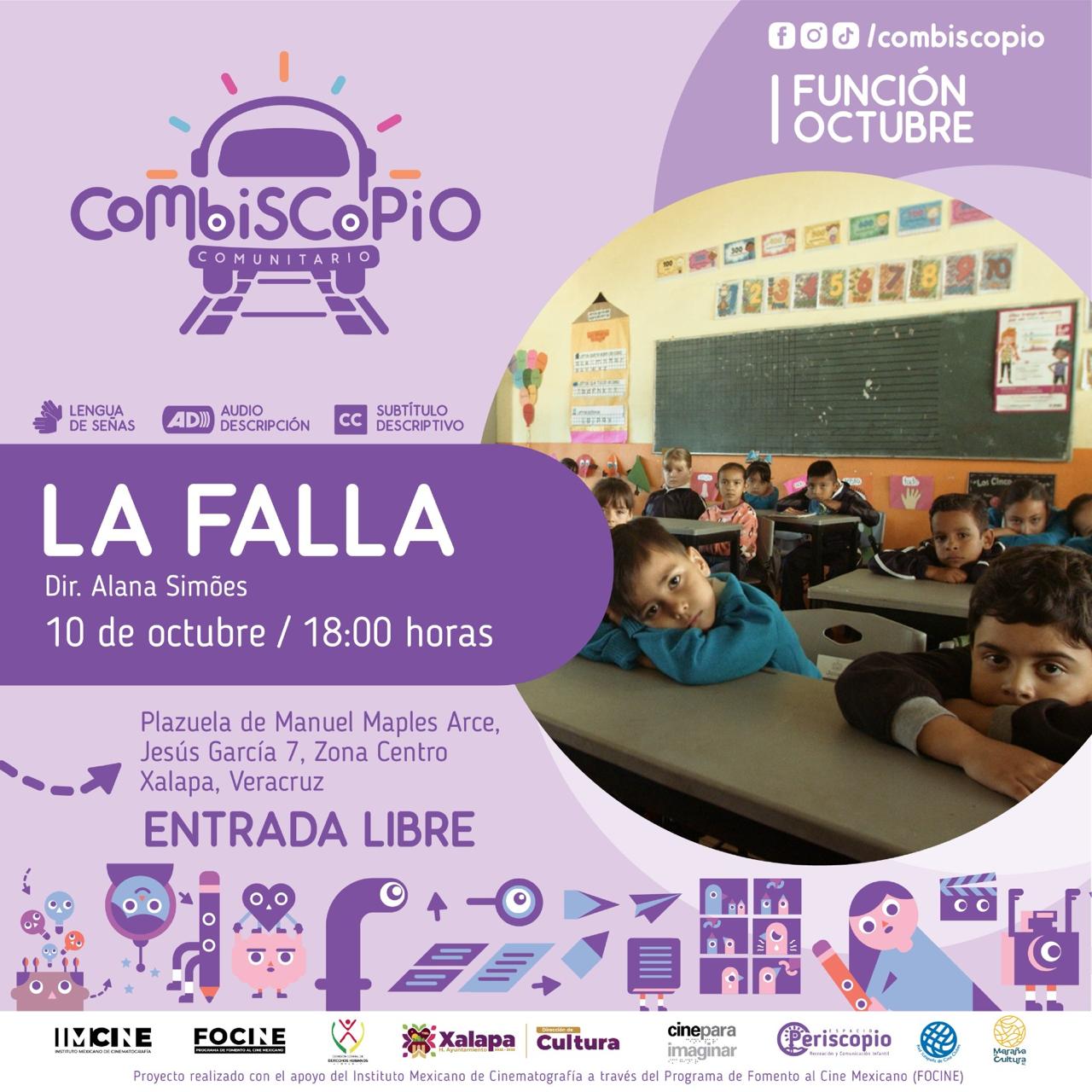 Esta actividad forma parte de la Ruta Combiscopio Comunitario 2025, coordinada por Periscopio Espacio, en alianza con la Red Xalapeña de Cine Clubes y Maraña es Cultura A.C., y cuenta con el apoyo del Instituto Mexicano de Cinematografía (IMCINE) a través del Programa de Fomento al Cine Mexicano (FOCINE).