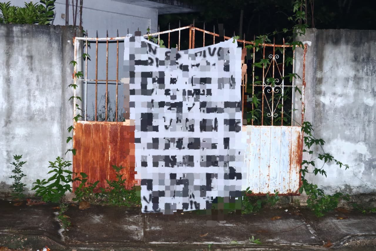 “Saludos a todos mis amigos y amigas, no se dejen sorprender por esos trapos apestosos que fueron los delincuentes, ya están desesperados y no saben cómo desprestigiarme, está es la segunda lona que lanzan tratando de echarme la culpa a mi, deberían de tener al menos los suficientes huevos para afrontar las cosas terribles que andan haciendo, no sean tan chillones,” señaló.