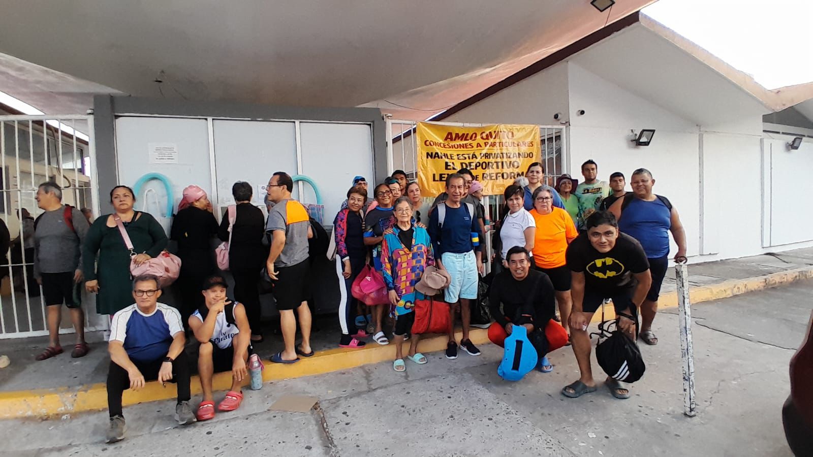 Boca del Río, Ver.- Varios ciudadanos se presentaron la mañana de este martes 10 de marzo a las afueras del Centro Deportivo «Leyes de Reforma», para realizar una protesta y denunciar la privatización de las albercas.