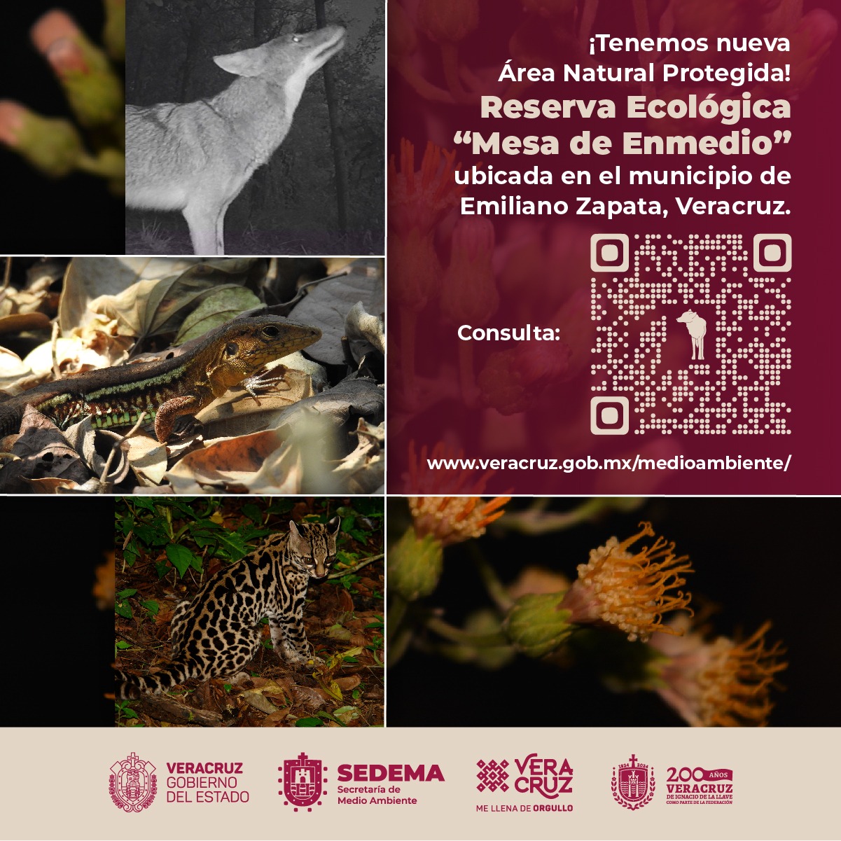 Xalapa, Ver.- Tras suma de esfuerzos con la sociedad civil, el municipio de Emiliano Zapata, y el Gobierno del Estado, se decretó una nueva área natural protegida en la categoría de Reserva Ecológica denominada «Mesa de En medio».