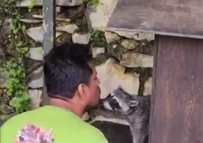 Empleado de la UMA Orizaba recibe el ataque de cariño más tierno de un mapache