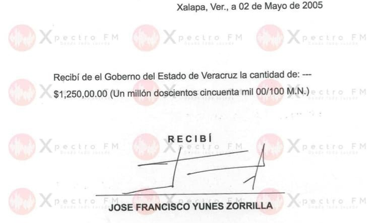 También, en otros recibos, aparece la firma autógrafa del candidato plurinominal a la diputación local, Héctor Yunes Landa, quien, de igual forma, recibía cantidades millonarias por parte del gobierno del estado para financiar personal y estructuras operativas en diferentes puntos de la entidad.