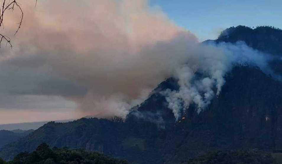 Este día, fuerzas de tarea de ambos estados, de la Federación y los municipios trabajan para sofocar por aire y tierra el siniestro en una barranca en los límites de Quimixtlán e Ixhuacán de los Reyes.
