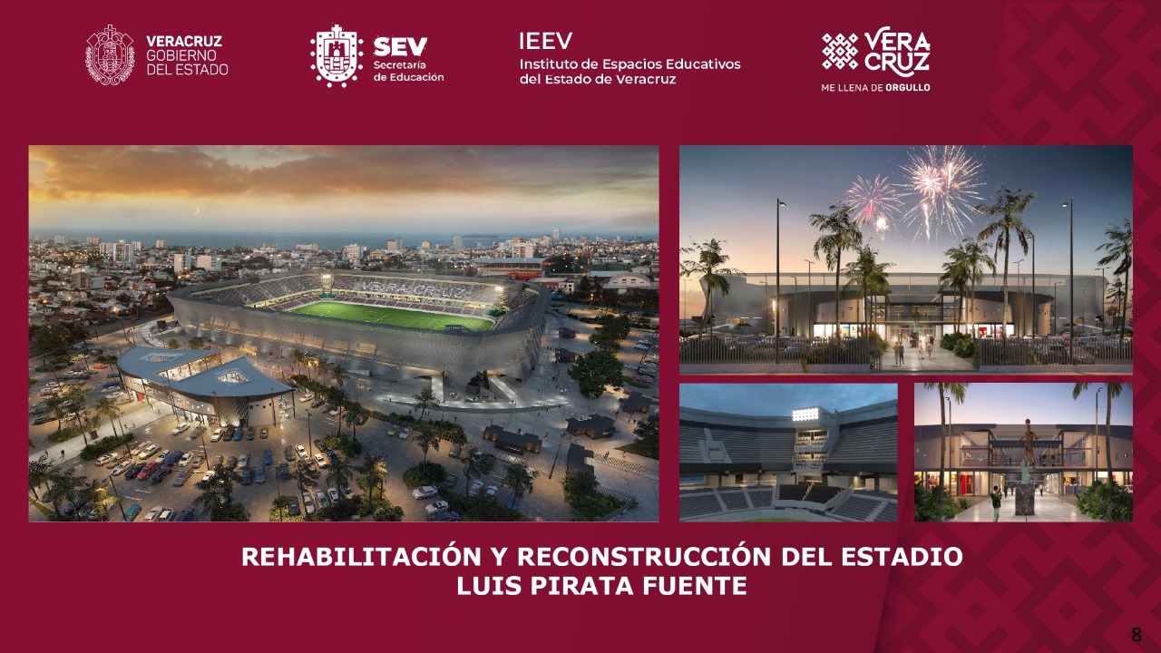 “Garantizamos que tendrá estas condiciones antes de que nos vayamos y permitirá disfrutar todo tipo de eventos; esperamos pronto la Primera División y que Veracruz esté presente”, refirió durante la presentación de avances de los trabajos realizados con la calidad para legar un estadio de futuro.