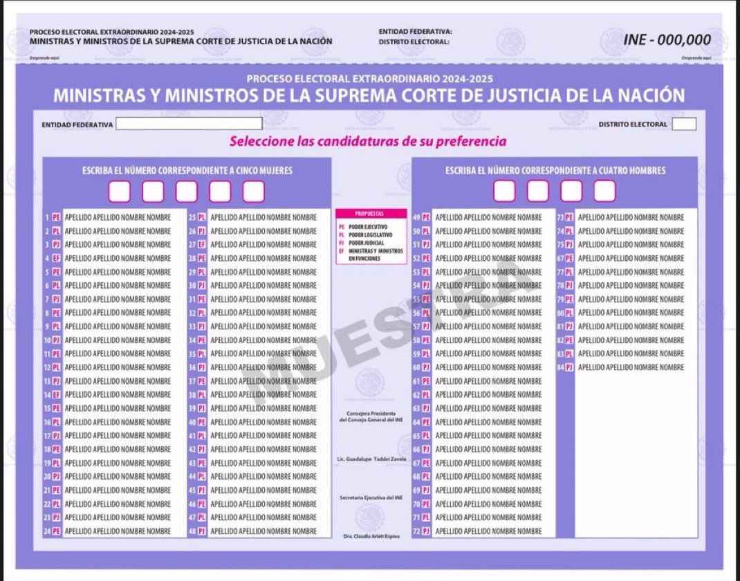 El Instituto Nacional Electoral (INE) aprobó el diseño de las boletas para la Elección Judicial del 2025, un proceso histórico en el que se elegirán jueces, magistrados y ministros del Poder Judicial de la Federación.