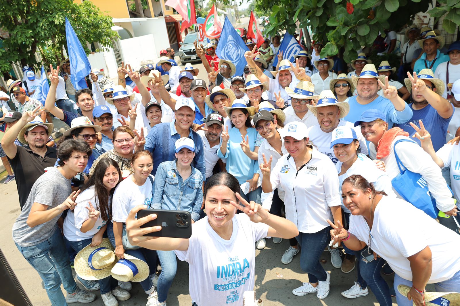 Indira Rosales San Román candidata de la alianza «Fuerza y Corazón por Veracruz», caminó este miercoles por las calles de la localidad de El Tejar; este jueves 2 de mayo se tiene programado un recorrido por la colonia Ampliación Miguel Alemán en el municipio de Boca del Río, en punto de las 4 de la tarde.