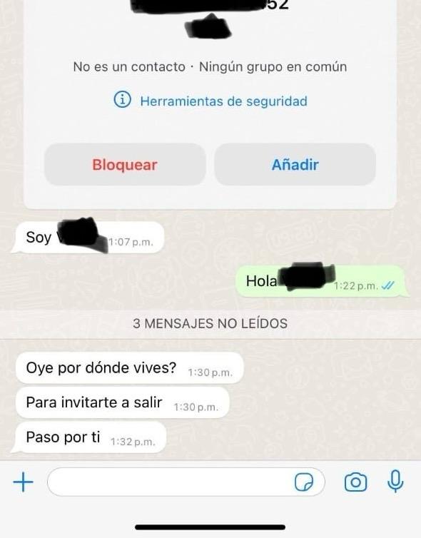 No obstante, minutos después, la joven recibió un mensaje de este hombre, de quien omitiremos datos personales, pidiéndole la ubicación de su domicilio para “ir por ella” e invitarla a salir.