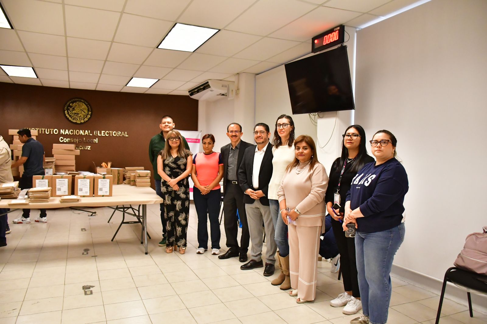 La documentación electoral arribó a las oficinas de la JLE del INE en Veracruz para el conteo, sellado y elaboración de los paquetes electorales que deberán entregarse a la ciudadanía inscrita; el funcionariado del INE que vigiló esta actividad fue, el Vocal Ejecutivo, Josué Cervantes Martínez; la Consejera en Veracruz, Olivia Aguilar Dorantes; la Vocal Secretaria, Christian Mariana Ceballos Garduño; y la Vocal de Organización, Silvia Meléndez Pérez.