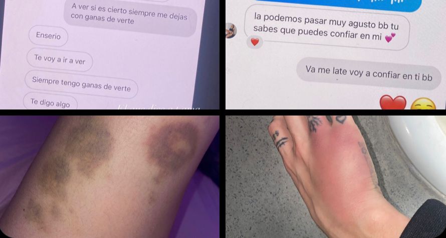 Akasha compartió fotografías que muestran partes de su cuerpo cubiertas de moretones, acompañadas irónicamente por la frase «Detalles que enamoran». Las imágenes revelan hematomas pronunciados en brazos, muñecas y manos, evidenciando la presunta violencia física sufrida.