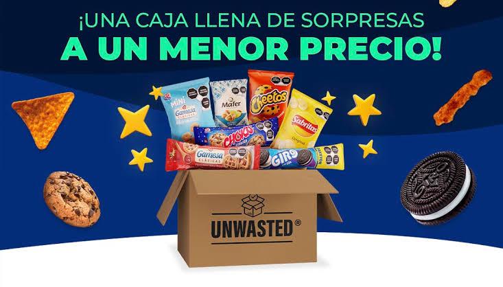 La plataforma Unwasted permite a los consumidores ordenar a domicilio, sin costo de envío, cajas sorpresa que contienen una variedad de productos como galletas, botanas, papas fritas, cacahuates, dulces y avena. Estas cajas, disponibles en tamaños grande y mediano, contienen productos seleccionados de acuerdo con el inventario disponible y tienen una vida útil de al menos dos semanas, garantizando su consumo en óptimas condiciones.
