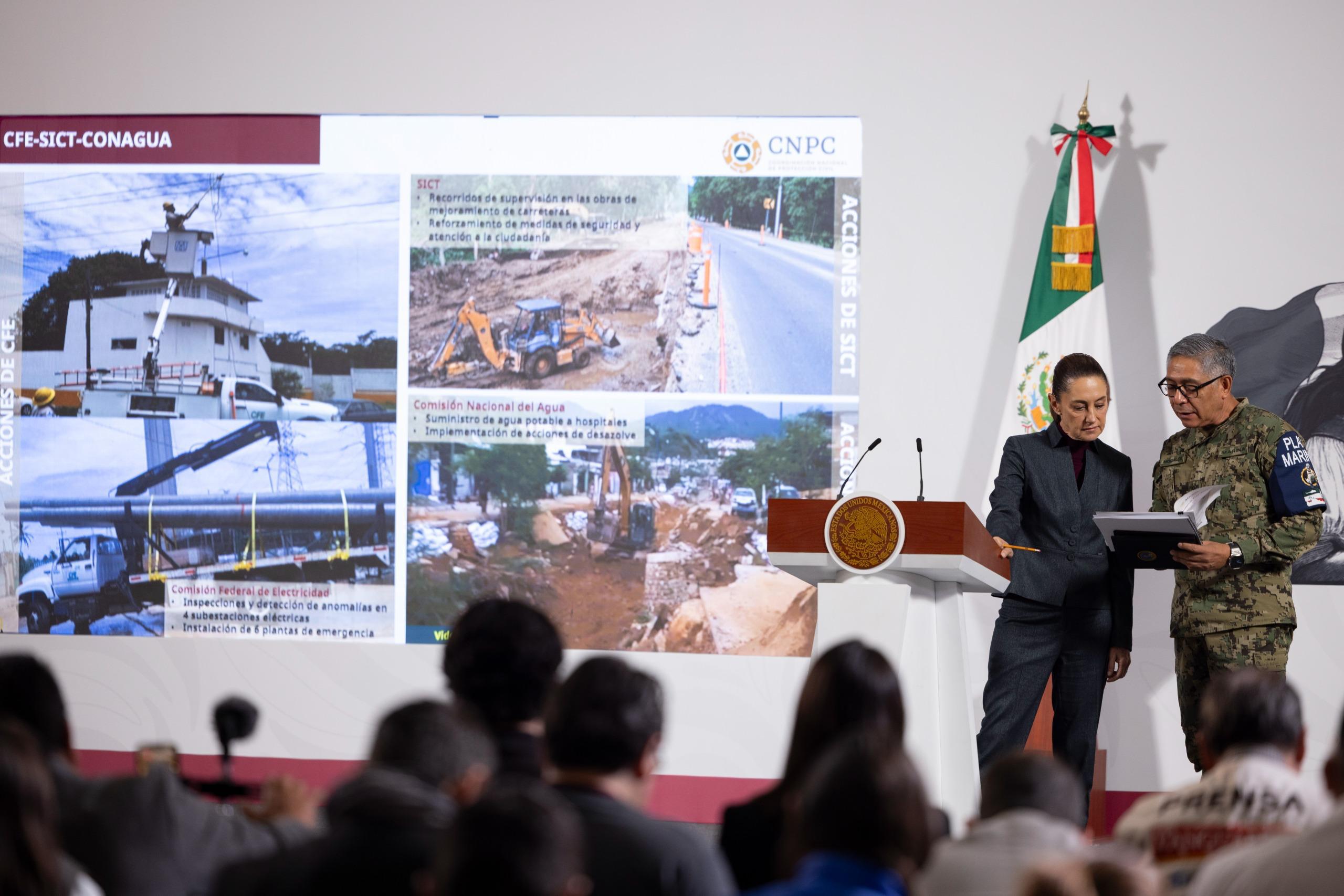 - “Se está en contacto con la Defensa, con la Marina, que están en esta zona. Y podemos informar, realmente, en unas horas cuáles son los efectos en estas poblaciones”, precisó la Jefa del Ejecutivo Federal