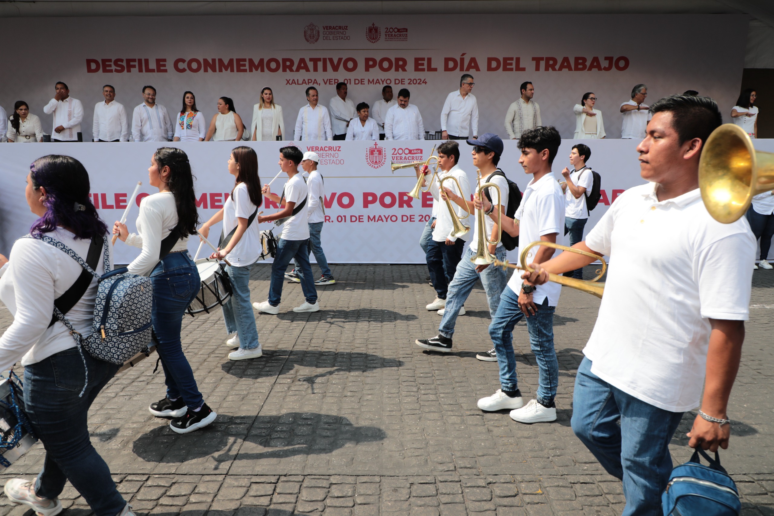 En punto de las 9:00 horas, las mujeres y hombres que representan la fuerza productiva de Veracruz iniciaron el magno desfile para conmemorar la lucha de los Mártires de Chicago en 1986 y la promulgación del Artículo 123 en 1917, saliendo de la avenida Manuel Ávila Camacho hacia Juan de la Luz Enríquez, frente a la sede de la máxima autoridad en el estado.