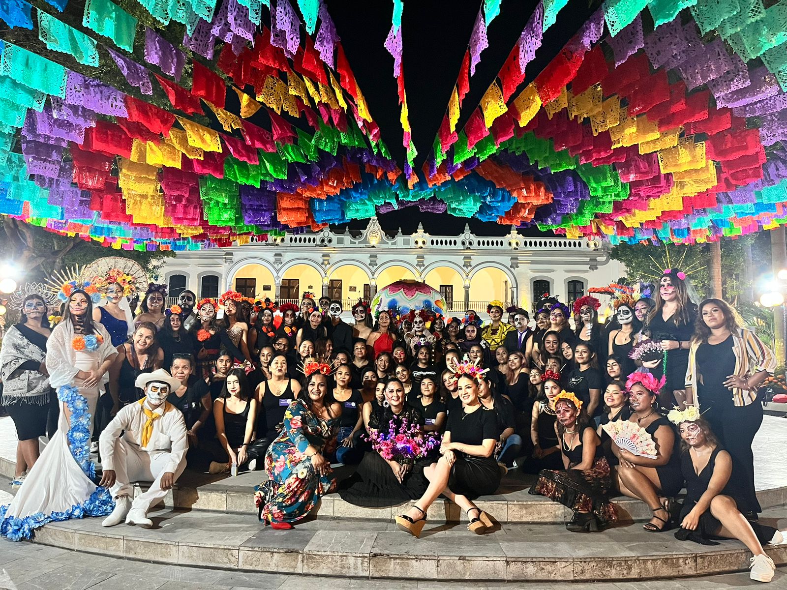 Veracruz, Ver. La noche de este viernes se realizó una pasarela de Catrinas en un hotel del centro histórico de Veracruz, misma que culminó en el Zócalo de la ciudad.
